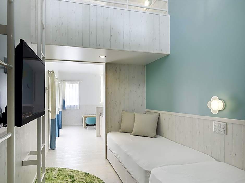 The spacious family room features air conditioning, tatami, a seating area, a wardrobe and a flat-screen TV. The unit has 6 futons.