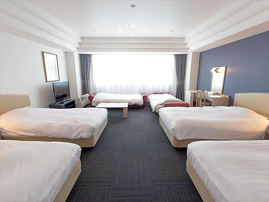 This quadruple room is air-conditioned and has a seating area with a flat-screen TV, a wardrobe, an electric kettle, a carpeted floor, as well as pajamas. The unit has 2 beds.
